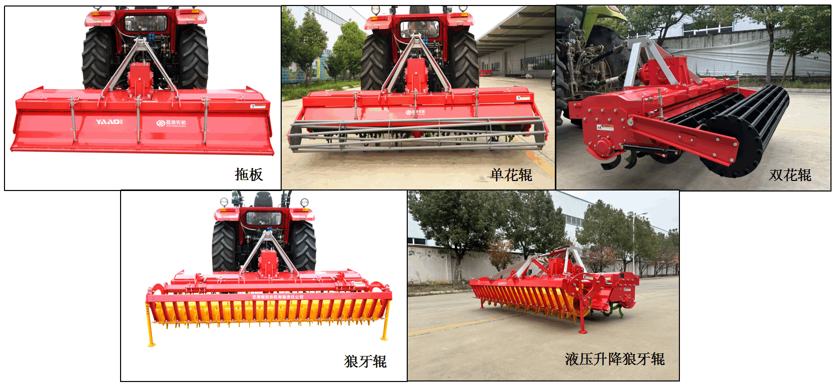 由拖拉機(jī)動(dòng)驅(qū)動(dòng)的耕整地作業(yè)機(jī)具,利用刀軸上旋耕刀的旋轉(zhuǎn)運(yùn)動(dòng)和機(jī)具前進(jìn)的復(fù)合運(yùn)動(dòng)對土地進(jìn)行旋耕碎土作業(yè),能一次完成耕、耙、平的作業(yè)。具有旱田碎土充分,地面平整,水田泥爛成漿,適應(yīng)性廣、作業(yè)效率高等優(yōu)點(diǎn)。