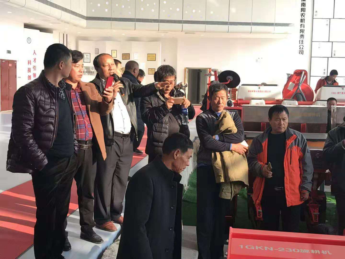 亞澳公司總經(jīng)理助理郭靖和銷售部經(jīng)理王紅衛(wèi)負責接待,一行70多人來到大廳,首先郭總給大家介紹了亞澳農(nóng)機的企業(yè)文化及發(fā)展歷程,并介紹了展廳里所展示的代表性機具。