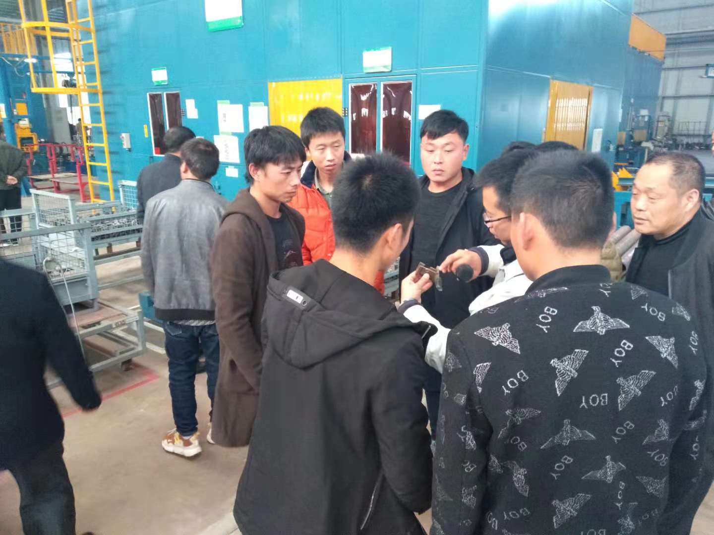 次日上午,公司又安排所有農(nóng)機合作社來到我們的制造車間,王經(jīng)理給大家實地講解每一臺機具的制造流程及生產(chǎn)工藝。