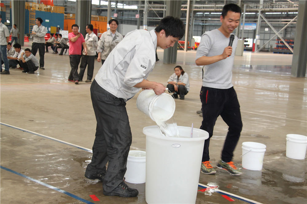 下午13:30在運動場出現(xiàn)了擺放有序的水桶,這是我們的第二項活動:精益運輸大接力,取水點的距離分別大于等于10米,每個桶分別裝滿10L水,每組隊員是五個人,要在120秒內(nèi)完成大桶水量的收集,超過120秒的隊員淘汰出局,在規(guī)定的時間內(nèi),水量收集多者獲勝,抽簽決定出場順序,這項活動是讓員工明白精益化生產(chǎn)體系的精髓所在之處;減少過程浪費,實現(xiàn)低成本的快速交付,滿足客戶的同時,做到細(xì)節(jié)控制,提升產(chǎn)品使用價值,提升公司盈利空間。比賽開始了只見隊員雙手提起20L的水往下一站的隊友那里送,中間會有灑水會很累,但是每個人都為了自己隊伍的榮譽拼盡全力向終點奔去,旁邊的隊友為他們加油、吶喊,最終自焊獲得第一名。