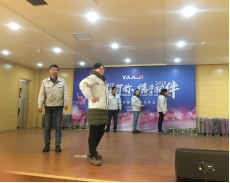 接著使人捧腹大笑的話劇表演《羅密歐與朱麗葉》、優(yōu)美激昂的詩朗誦《十年獨(dú)白》、別具一格的《三句半》、令人陶醉的深情歌唱《男人花》、貼近現(xiàn)實(shí)生活又精彩的小品《應(yīng)聘》一一登上了舞臺。中間穿插的小游戲更是把年會推上了高潮。