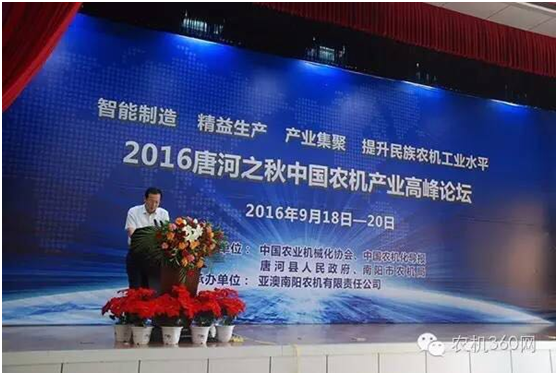 9月20日,由中國農業(yè)機械化協(xié)會、《中國農機化導報》、河南省唐河縣政府和南陽市農機局共同主辦,亞澳南陽農機有限責任公司承辦的2016唐河之秋中國農機產業(yè)高峰論壇在河南省唐河縣舉行。全國各地農機生產企業(yè)、當地經銷商以及媒體代表共200多人參加了此次論壇。